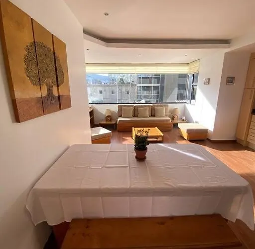 O apartamento Dept San Francisco By Encantadas Quito de 100 m² oferece fácil acesso a várias atrações da cidade, como o Flacso, situado a 5 minutos a pé.
